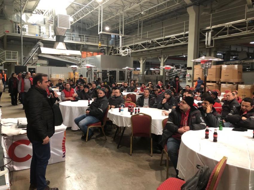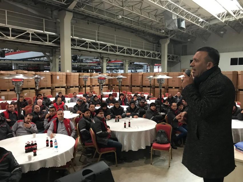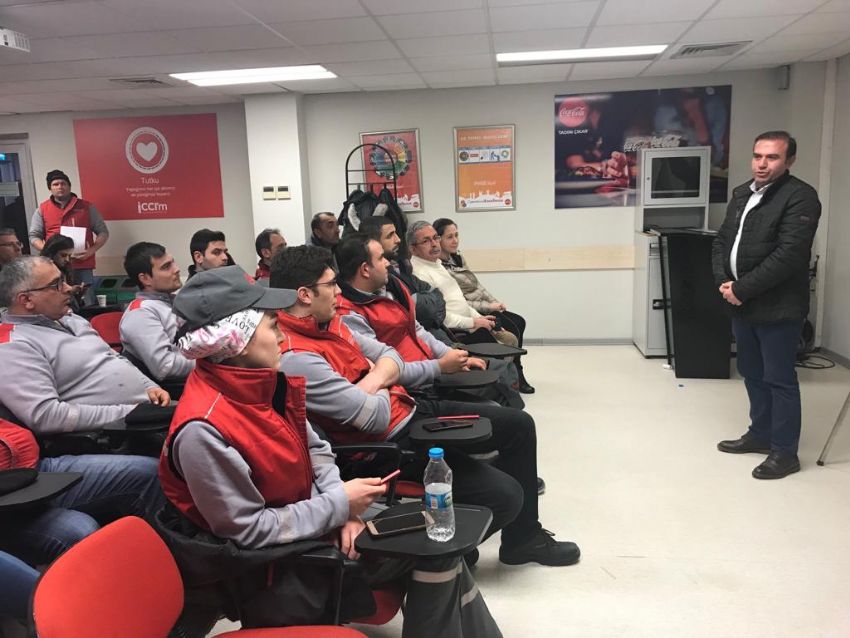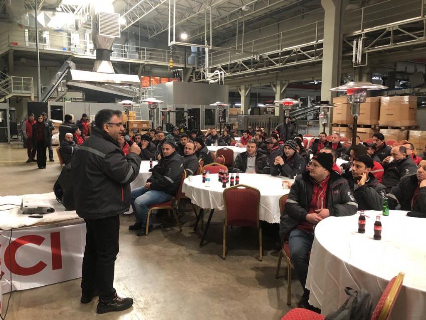 Coca Cola’daki üyelerimize yönelik eğitimlerde 8. durağımız Bursa fabrikası oldu. Endüstriyel İlişkiler ve Çalışma Hayatı yasaları konularında üyelerimizi ODTÜ Öğretim Görevlisi Yıldırım Koç bilgilendirdi. EĞİTİMimizin açılışını Coca Cola Bursa Fabrikası yöneticileri ile sendikamızın Genel EĞİTİM SEKRETERİ Kemal Köse ve Bursa Şube Başkanı Zeki Ertürk yaptı.