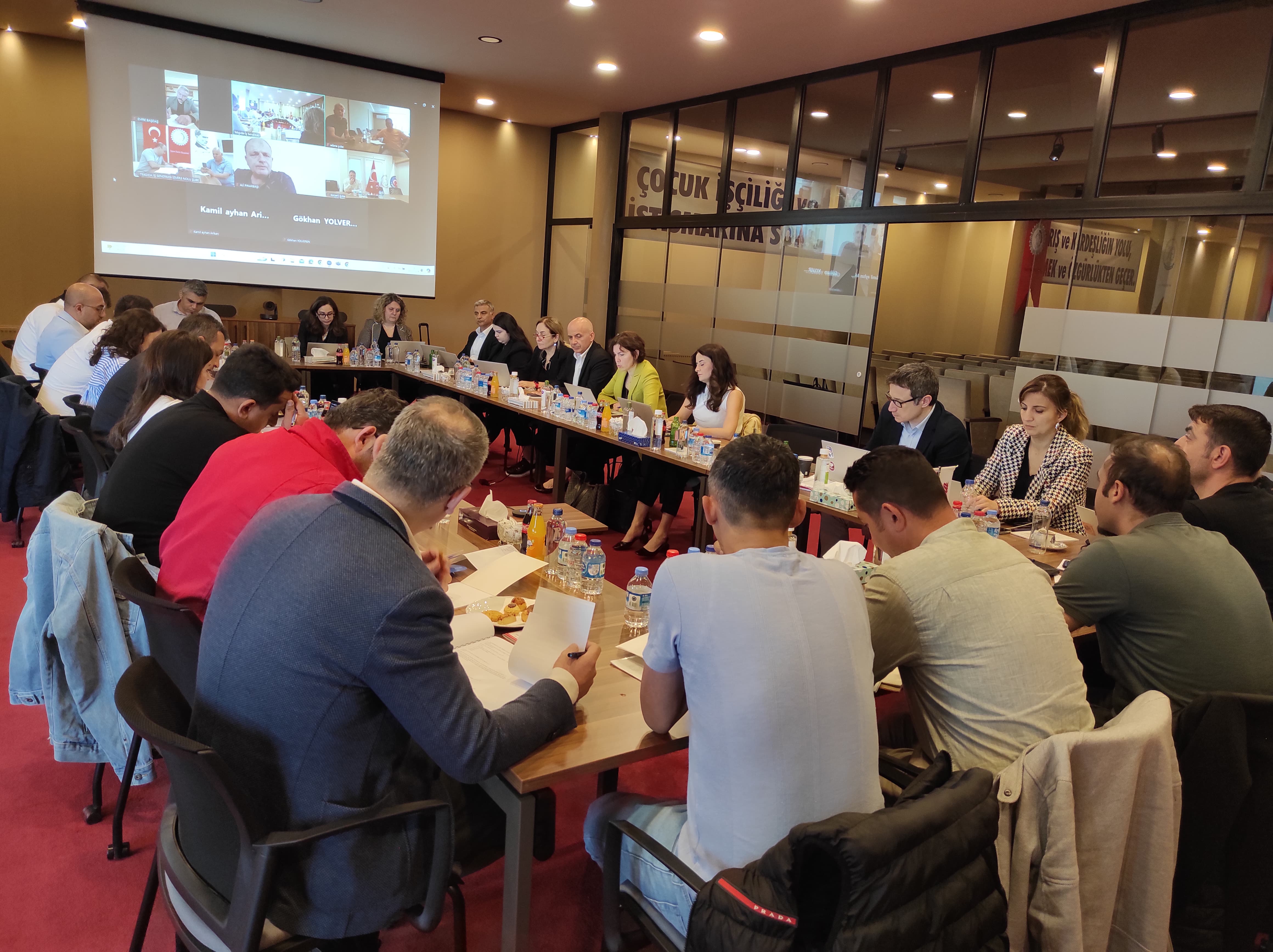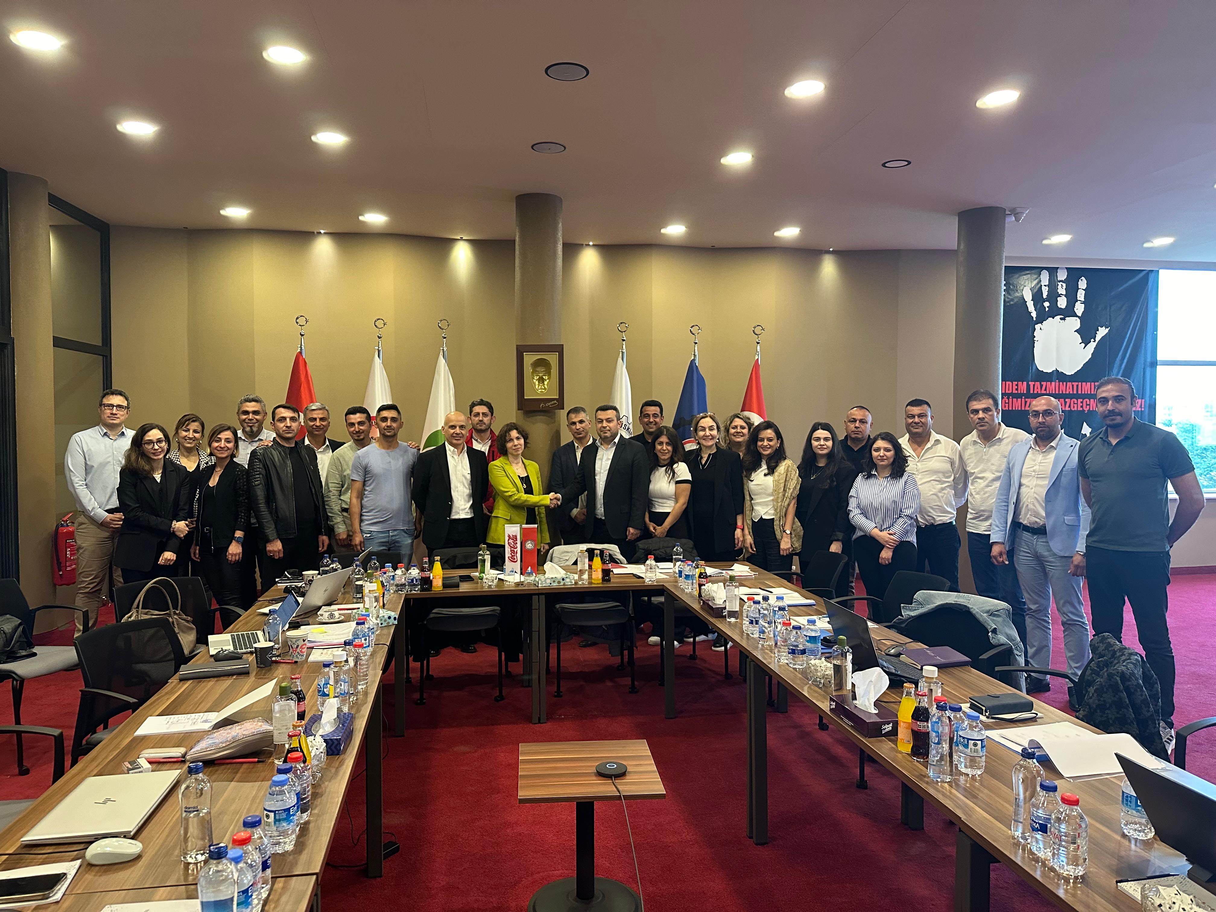 Sendikamızın genel merkezinde yapılan toplantıya sendikamız adına Genel Sekreterimiz İbrahim Ören, Adana Şube Sekreterimiz Aydın Ata, Bursa Şube Eğitim Sekreterimiz Semih Uludağ, Endüstriyel İlişkiler ve Toplu İş Sözleşmesi Koordinatörümüz Avukat Nilgün Çelik Türkmen, Endüstriyel İlişkiler ve Toplu İş Sözleşmesi Koordinatörümüz İzel Erdoğan Kılınç ile işyeri temsilcilerimiz Yüksel Yalçınkaya, Ahmet Güldal, Ünal Adıkal, Özgür İşleyen, Hakan Değirmenci, Yusuf Ziya Yamaç, Bekir Ispaha, Coşkun Göktaş, Şeref Kanmaz ve Adil Bayındır katıldı.