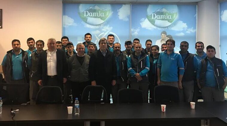 Coca Cola’ya bağlı Damla Su Köyceğiz Fabrikasında 26 Kasım 2018 tarihinde işyeri eğitimimizi gerçekleştirdik. ODTÜ Öğretim Görevlisi Yıldırım Koç’un verdiği Çalışma Hayatı Yasaları ve Endüstriyel İlişkiler konulu eğitimimize tüm üyelerimiz katılırken eğitim seminerinin açılışını İzmir 3 Nolu Şube Başkanımız Latif Gökçay ve Damla Su Üretim Müdürü Mehmet Sinan Kayhan yaptı.