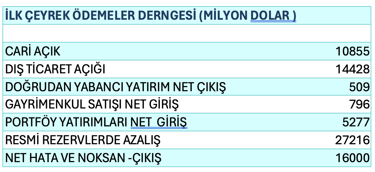 Kaynağı belli olmayan döviz giriş ve çıkışlarını gösteren net hata ve noksan da ilk çeyrekte, 16 milyar dolarlık çıkış olmuştur. Hatırlarsak, 2022 yılında 26,4 milyar dolarlık giriş olmuştu.