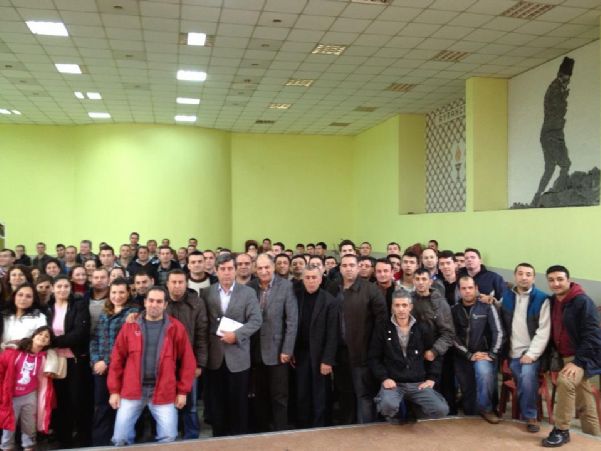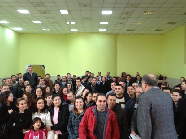 Genel EĞİTİM SEKRETERİmiz Sn. Mustafa AKYÜREK bu gün (10 Mart 2013) İZMİR’de iki ayrı toplantı yaptı. Sabah saat 10.00-13.00 arasında Torbalı’da Dr. Oetker işçileriyle görüşen Genel EĞİTİM SEKRETERİmiz, öğleden sonra saat 14.00-17.00 arasında da 3 No’lu Şubemizde TAT KONSERVE Grubuna bağlı Pastavilla’da çalışan üyelerimizle buluştu. Toplantıya Şube Başkanı Sn. Latif GÖKÇAY, Şube SEKRETERİ Sn. Salim SARAÇ ve işletmelerin sendika temsilcileri de katıldılar.
