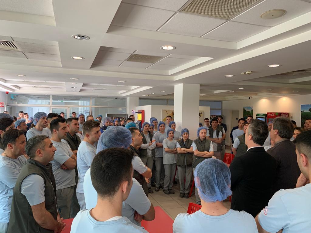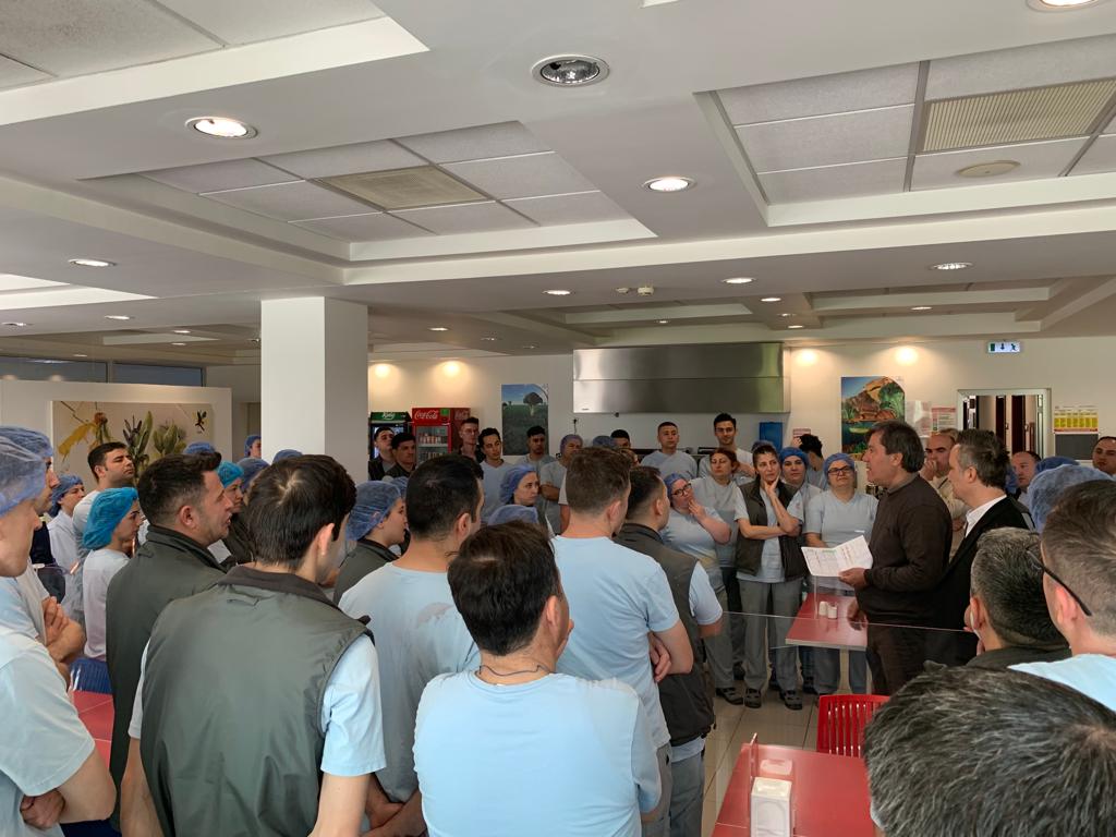 Fabrika yerleşkesinde yapılan toplantıya sendikamız adına İzmir 3 Nolu Şube Başkanımız Latif Gökçay, Şube Sekreterimiz Günay Aslan, Şube Eğitim Sekreterimiz Zeynep Örnekli, Şube Personelimiz Volkan Temese ile işyeri temsilcilerimiz Hüseyin Arslan, Tolgahan Arslan ve Duygu Demirayak katıldı.