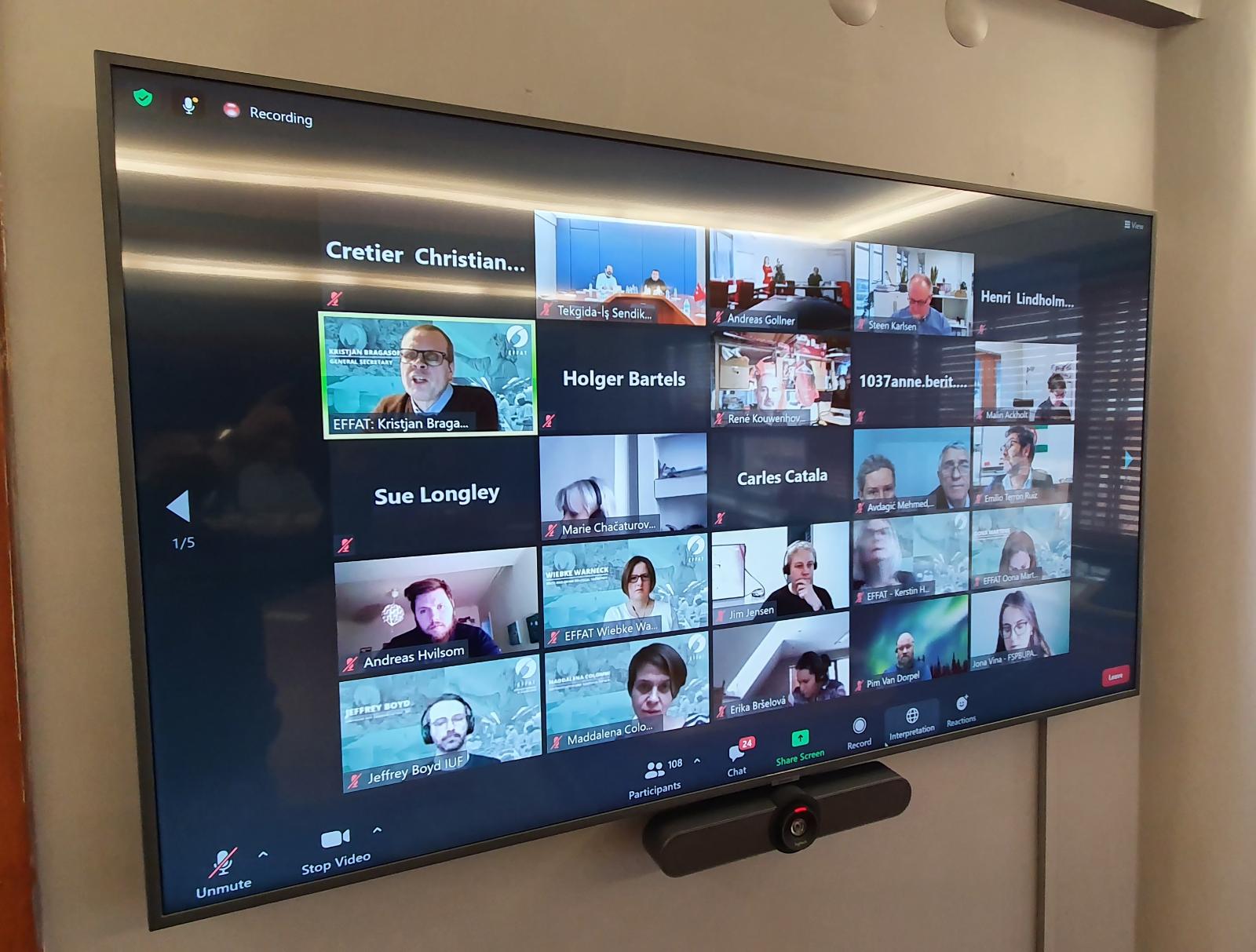 Avrupa Gıda, Tarım ve Turizm Sendikaları Federasyonu EFFAT Yönetim Kurulu toplantısı online olarak yapıldı. Yönetiminde Tekgıda-İş’in de yer aldığı uluslararası federasyon toplantısının açılışını EFFAT Genel Sekreteri Kristjan Bragason yaptı. IUF Genel Sekreteri Sue Longley’in de katıldığı toplantıya Tekgıda-İş Sendikası’nı temsilen Yönetim Kurulu Üyesi İbrahim Ören yer aldı.