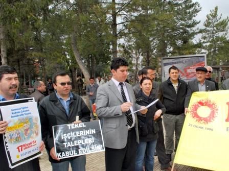 Özbent, açıklamasında ayrıca, “Parasız eğitim ve sağlık hakkını sağlanması, kadrolu çalışma, çalışma yaşamının demokratikleştirilmesi ve demokratik bir anayasa için 17 Nisan’da Ankara’dayız. 14 Nisan’da İstanbul ve Urfa’dan başlamak üzere 3 günlük iki ayrı yürüyüş kolu başlatarak, tüm eğitim emekçilerinin katılımıyla 17 Nisan’da Ankara’da buluşacağız. Tekel işçilerinin 1 Nisan’da Ankara’da yeniden başlattığı mücadelelerini biz eğitim emekçileri olarak 17 Nisan’da Ankara’da bir kez daha yükselteceğiz” diye konuştu.