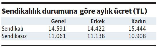 Toplu iş sözleşmesi kapsamında olup olmama durumuna göre yapılan değerlendirmede ise sendikalı çalışanların ortalama ücretten ve sendikasız çalışanlardan daha yüksek gelir elde ettiği belirlendi. Sendikalı işçiler aylık ortalama 14 bin 591 lira kazanırken, sendikalı olmayanlar 11 bin 61 lira ücret geliri elde ettiler. Öte yandan işgücüne katılımda kadınlarla erkekler arasındaki eşitsizlik, elde edilen ücretlerde de dikkat çekti. TÜİK’e göre 2022 yılında erkekler ortalama 11 bin 233 lira kazanırken, kadınların ortalama kazancı 10 bin 961 lirada kaldı. Ancak sendikalı kadınların, sendikalı erkeklerden daha yüksek gelir sağladığı belirlendi. Sendikalı kadınlar ortalama 15 bin 444 lira kazanırken, sendikalı erkekler 14 bin 422 lira kazandı.