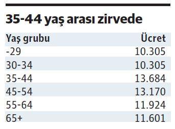 Yaş gruplarına göre analizde en çok aylık ücreti 13 bin 684 lira ile 35-44 yaş aralığının alması dikkat çekti. 30-34 yaş arası 13 bin 379 lira, 45-54 yaş arası ise 13 bin 170 lira elde etti. En az ücreti ise 10 bin 305 lira ile 29 yaş altı kazandı.