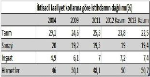 Yaklaşık on yıldan bu yana toplam istihdamın yarısını barındıran hizmetler sektöründeki yoğunlaşma tam gaz devam etmekte, 9 yılda yüzde 43’lük bir artışla bugün toplam istihdamın yarısından fazlası ise hizmetler alanında yer almaktadır. Hizmetler alanı; tarım, madencilik ve imalat sektörlerinin dışında kalan tüm faaliyetler olarak tanımlayabileceğimiz, yelpazesi oldukça geniş bir alandır.