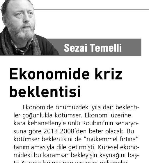 Ekonomide önümüzdeki yıla dair beklentiler çoğunlukla kötümser. Ekonomi üzerine kara kehanetleriyle ünlü Roubini’nin senaryosuna göre 2013 2008’den beter olacak. Bu kötümser beklentisini de "mükemmel fırtına" tanımlamasıyla dile getirmişti.