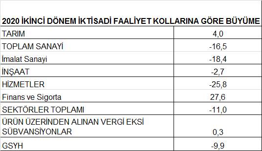 İkinci çeyrekte sanayi sektörü, GSYH’daki daralmadan daha yüksek daraldı. Toplam sanayi sektörü yüzde 16,5 oranında; İmalat sanayii ise yüzde 18,4 oranında daraldı. Buna karşılık Finans ve sigorta faaliyetleri yüzde 27,8 oranında büyüdü. Demek ki finans sektörü ile reel sektör arasında denge, reel sektör aleyhine bozuldu. Bu durum yeni değil küreselleşme süreci içinde oluşan bir bozukluktur.