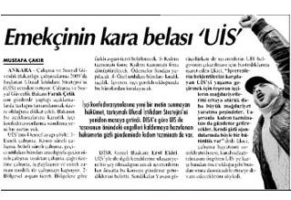 DİSK Genel Başkanı Erol Ekici, UİS’yle ile ilgili kendilerine ulaşan yeni bir şey olmadığını ancak işverenlerin her fırsatta bu konuyu gündeme getirdiklerini belirtti. Sendikalar Yasası görüşülürken de işverenlerin UİS belgesinin çıkarılması için bastırdıklarına işaret eden Ekici, “İşverenlerin beklentilerini karşılayan UİS’yi yaşama geçirmek için teşeron işçilerin mağduriyetlerini ortaya atarak daha büyük mağduriyet yaratma peşindeler. Taşeronla kıdem tazminatını da gündeme getirecekler. Kendi gizli ajandalarında böyle bir bütünlük var” dedi. Ekici, çalışma hayatının esnekleştirilmesi, kuralsızlaştırılmasını öngören UİS’ye karşı bundan önce olduğu gibi bundan sonra da mücadele etmeye devam edeceklerini söyledi.