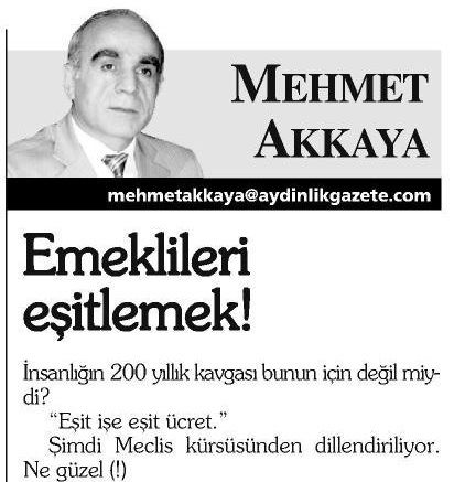OECD istedi diye, 2008 yılında emeklilerin maaşlarını bir gecede, çalışırken aldıklarının % 65’ine indirdiler. Kastettiği eşitleme böyle bir şey olsa gerek. Ama yetmemiş olmalı ki, daha da ‘eşitlemek’ istiyor. İlla da ‘eşit işe eşit ücret’ olacak.(!)