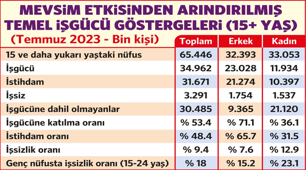 Ülkemizde, Temmuz 2023 yılı verilerine göre çalışan dağılımı aşağıdaki gibidir: