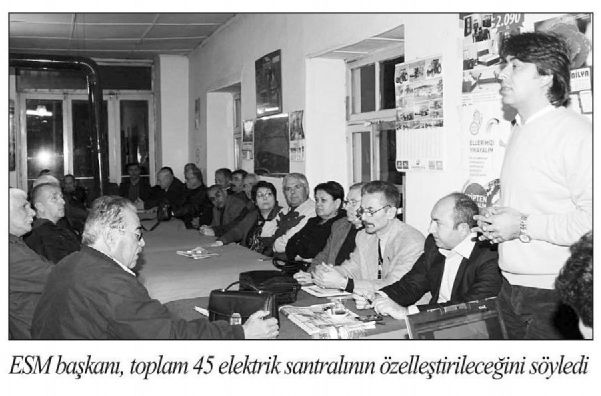 Enerji, Sanayi ve Maden Kamu Emekçileri Sendikası (ESM) Başkanı Müşfik Veysel Erdoğan, AKP hükümetinin Elektrik Üretim AŞ’ye (EÜAŞ) ait 45 adet elektrik santralını özelleştirmeye hazırlandığını, bu santralların 4 tanesinin teker teker, diğer 41 santralın da 9 ayrı paket halinde satışının planladığını söyledi.