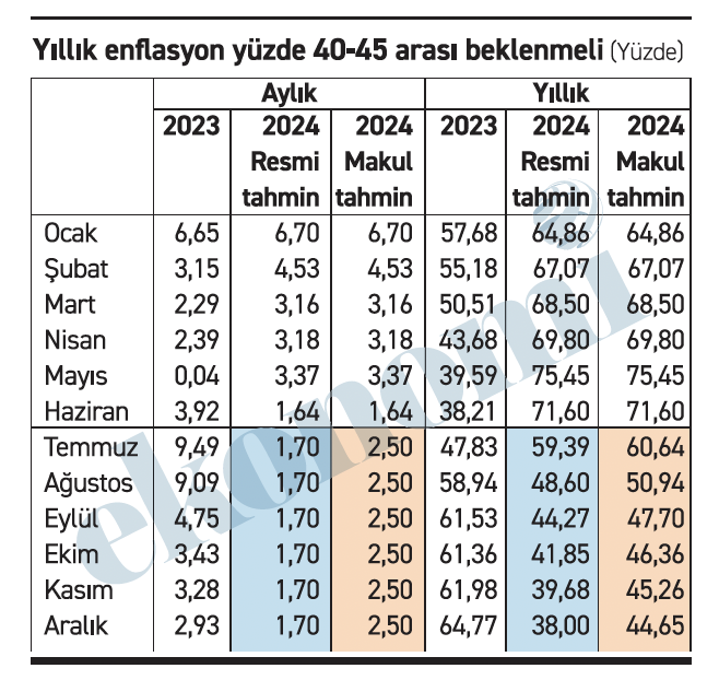 Ağustos ve sonrasının ne getireceğini şimdiden kestirmek pek kolay değilse de, 2024 enflasyonun en geniş marjda yüzde 40-45 arasında oluşabileceğini söylemek mümkün.