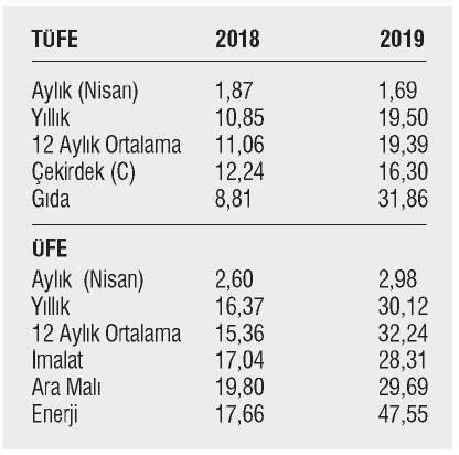 Nisan ayında aylık TÜFE oranı yüzde 1.69 ve yıllık TÜFE oranı yüzde 19.50 oldu.