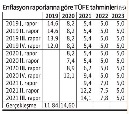 Merkez Bankası 2021 yılı TÜFE tahminini yüzde 14.1 olarak revize edince yılın ikinci yarısında hangi oranda bir beklenti olduğu da kendiliğinden ortaya çıktı.