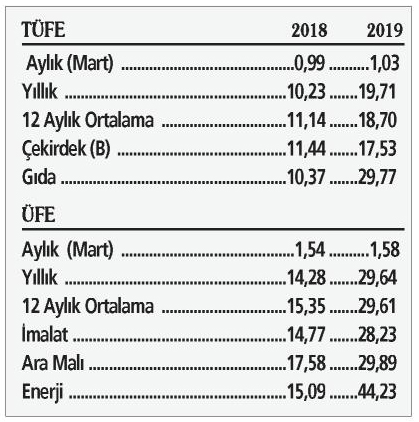 Mart ayında aylık TÜFE oranı yüzde 1.03 ve yıllık TÜFE yüzde 19.71 oldu.