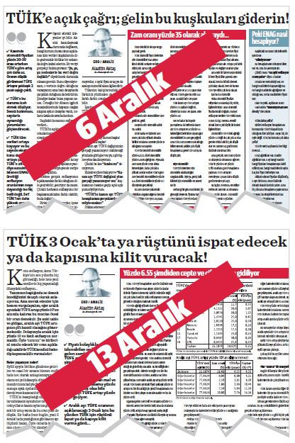 İkinci yazımı 13 Aralık’ta kaleme aldım ve TÜİK’i 3 Ocak’ta büyük bir sınavın beklediğine vurgu yaptım. Aralık ayı artışının yüzde 6.5’i o tarih itibarıyla kesinleşmişti ve aylık oran çift haneye gidiyordu.