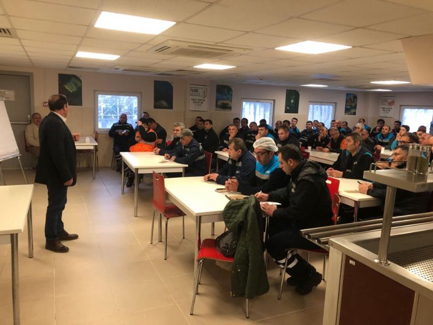 Erikli Su Fabrikasında geçtiğimiz hafta başlattığımız işyeri eğitimlerimizi 2. Grupla sürdürdük. 12 Mart 2019 tarihinde gerçekleştirilen eğitimimize vardiyadaki tüm üyelerimiz katıldı. ODTÜ Öğretim Görevlisi Yıldırım Koç, Çalışma Hayatı ve Endüstriyel İlişkiler konularında üyelerimize bilgi verirken, üyelerimizin sorularını da yanıtladı.