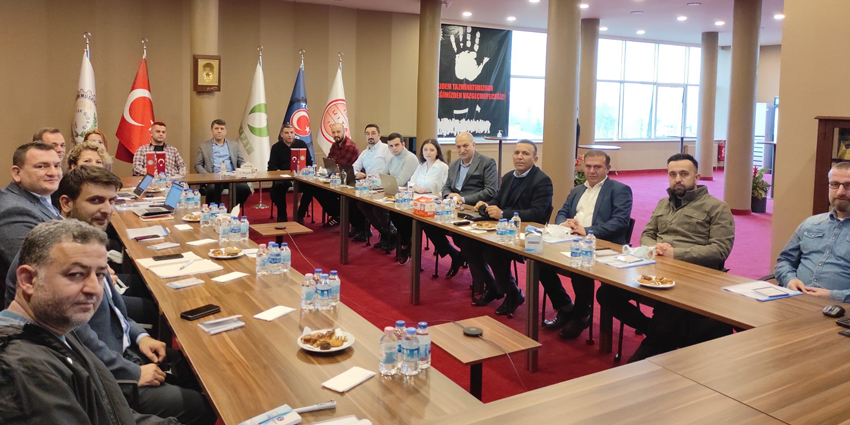 Sendikamızın genel merkezinde yapılan toplantıya sendikamız adına Genel Sekreterimiz Mustafa Akyürek, Genel Eğitim Sekreterimiz Kemal Köse, Bursa Şube Başkanımız Zeki Ertürk, Şube Sekreterimiz Engin Eraslan, Endüstriyel İlişkiler Uzmanlarımızdan İzel Erdoğan Kılınç ve Ömer Gürbüz, Endüstriyel İlişkiler ve ArGe Uzmanımız Tarık Tekgözli, İşyeri Sendika Temsilcilerimiz Onur Şahin, Mustafa Altunbaş, Murat Yılmaz, Emrullah Demir, Erkan Bayındır katıldı.