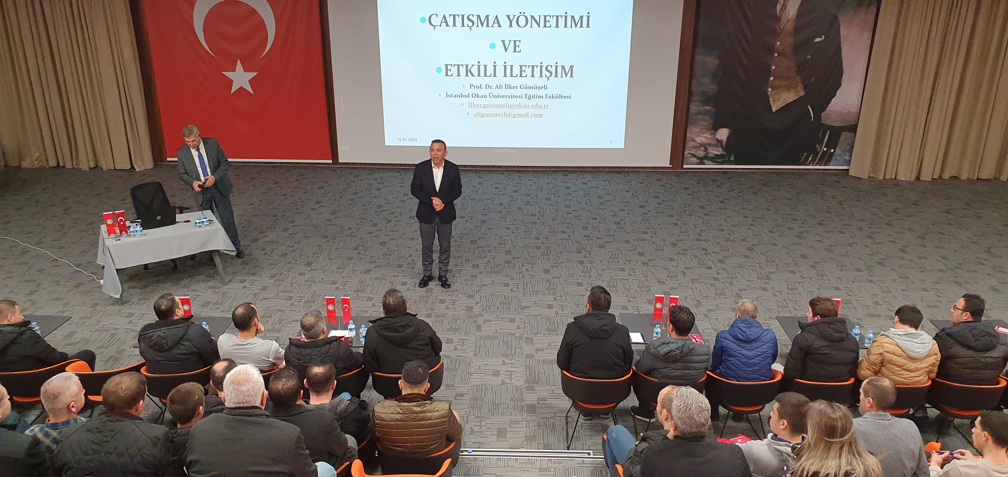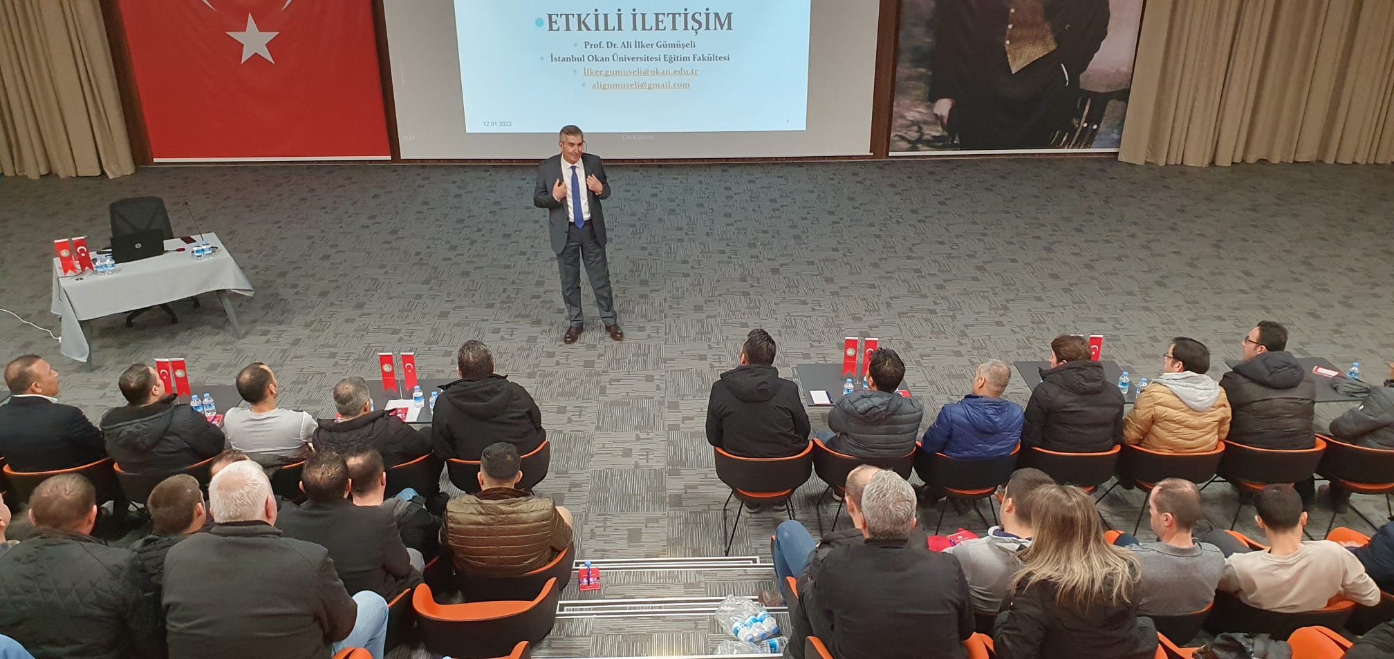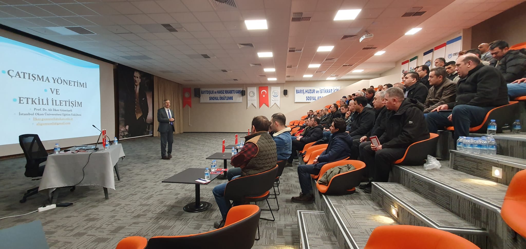 12 Ocak 2023 tarihinde Eskişehir binamızın Konferans Salonunda düzenlediğimiz eğitimimize Eskişehir 1-2 ve 3 Nolu şubelerimizin Yöneticileri ve Temsilcileri katıldı. Genel Eğitim Sekreterimiz Kemal Köse de Sendikamızın Eğitim Politikalarına ilişkin bir konuşma yaptı. Konuşmaların ardından Okan Üniversitesi Rektör Danışmanı ve Eğitim Fakültesi Öğretim Üyesi Prof. Dr. Ali İlker Gümüşeli, “İletişimde Kriz Yönetimi” konusunda; Sendikamız Bilgi İşlem Sorumlusu Evren Talkım da “Sosyal Medya Kullanıcılığı” konusunda temsilcilerimizi bilgilendirdi.