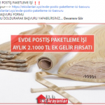 “Evde paketleme işi: Evde paketleme işi yaparak aylık 2.000 TL civarında kazanç sağlamanız mümkün. Yapacağınız paketleme işlerinden bazıları: Kalem paketleme, silgi paketleme, maket bıçağı paketleme, strafor paketleme, kalem ucu paketleme, telefon kılıfı paketleme, plastik bardak paketleme, kalemlik paketleme, anahtarlık paketleme, bulaşık fırçası paketleme”