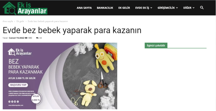 “El işi ürünleri hazırlama işi: Eğer el becerinize güveniyorsanız, mağazaların size vereceği el işi çanta, el işi bileklik, el işi kolye, el işi saat, el işi süsler gibi ürünleri evinizden hazırlayarak para kazanabilirsiniz. Mağazalar hazırlayacağınız ürünlerin örnek çalışmalarını ve gerekli tüm malzemeleri size temin edecekler. Gerekli eğitimleri de verdikten sonra kolay bir şekilde el işi ürünleri hazırlayabilirsiniz. Bu iş modelinde hazırlayacağınız ürünün zorluğuna göre alacağınız ücretler değişecektir. Ortalama 400 ile 500 TL arasında ödeme alırsınız.”