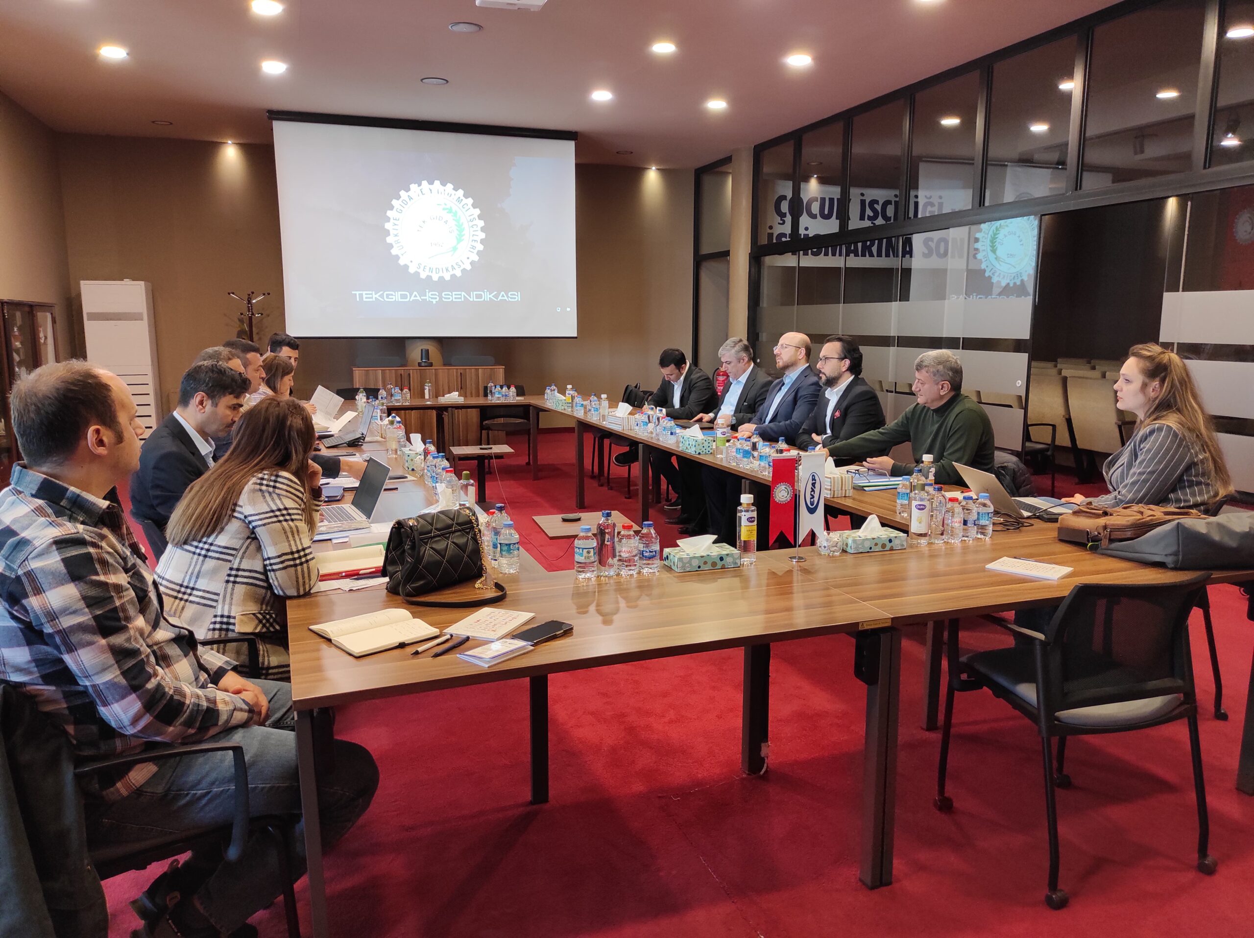 Sendika genel merkezinde yapılan toplantıya sendikamız adına Genel Sekreterimiz İbrahim Ören, Anadolu Yakası Şube Başkanımız Fikret Yılmaz, Şube Sekreterimiz Cemil Otlu, Genel Sekreter Yardımcımız İzel Erdoğan Kılınç ile işyeri temsilcilerimiz Selda Ünlü, Veli Özbay, Numan Eski, Aygül Kaya ve Fatih Şahin katıldı.