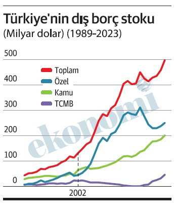 Dış borç artışının 1989-2023 döneminde yıllık bazda 40 milyar doların üstüne çıktığı yıl sayısı bir elin parmaklarından az, yalnızca dört.