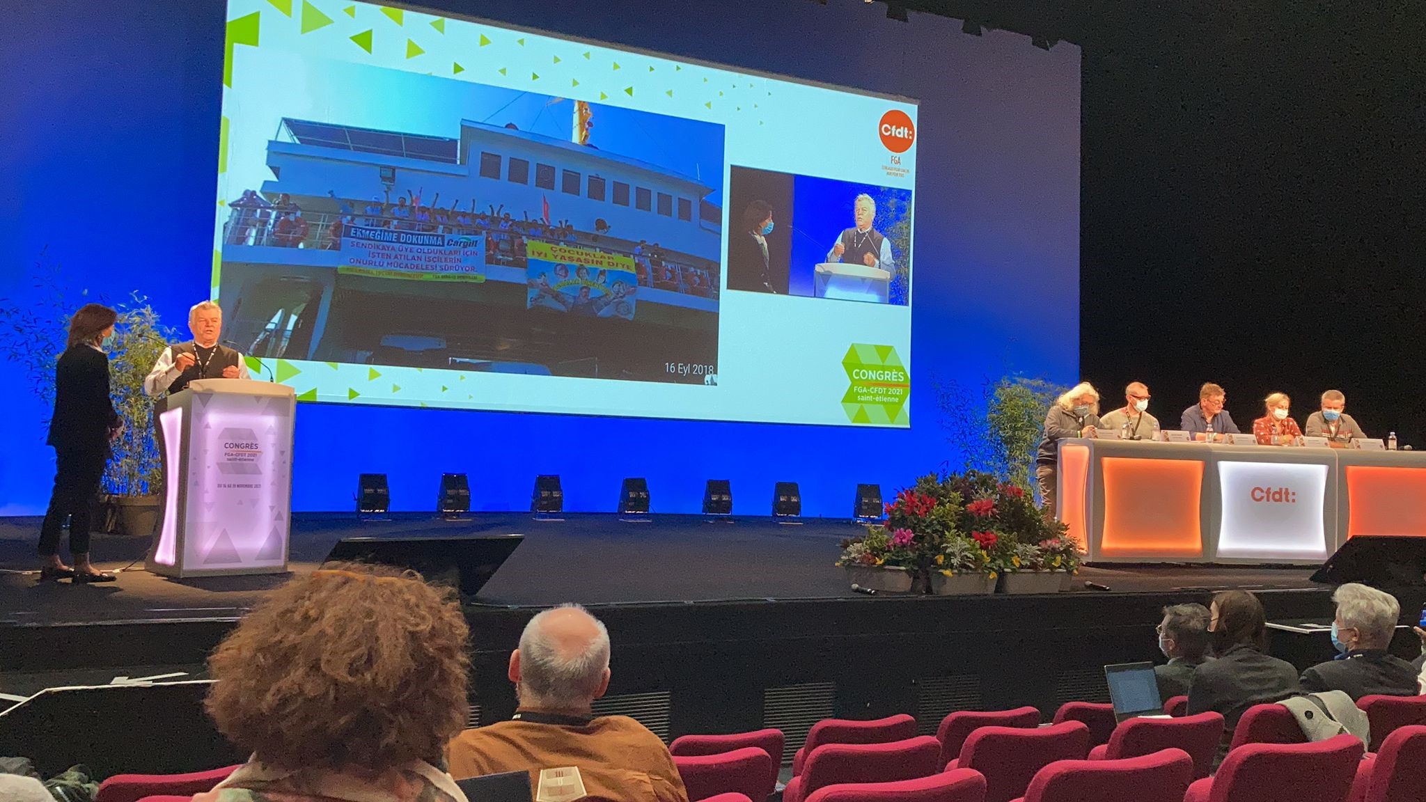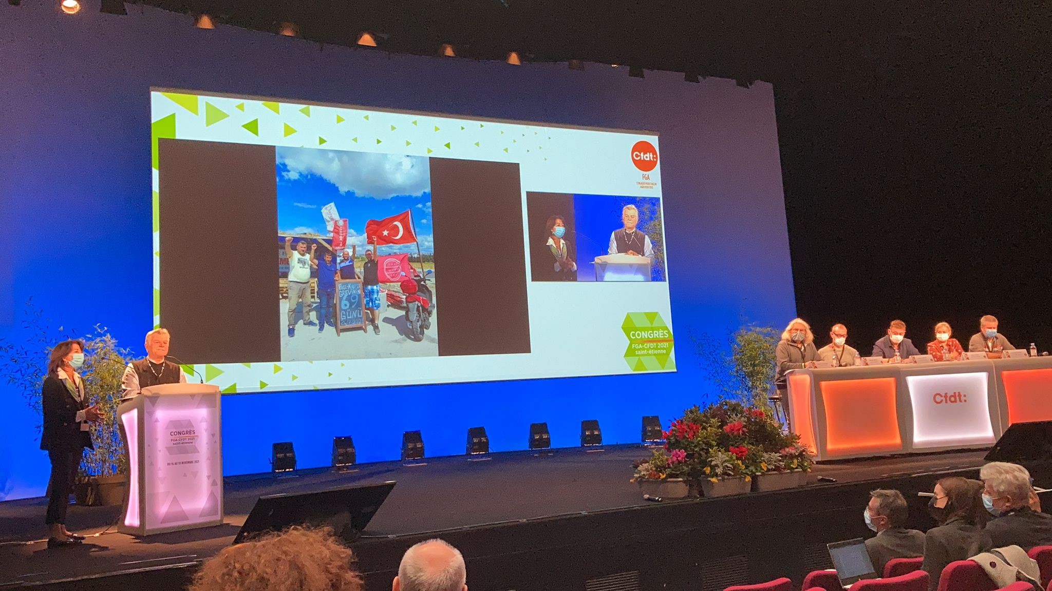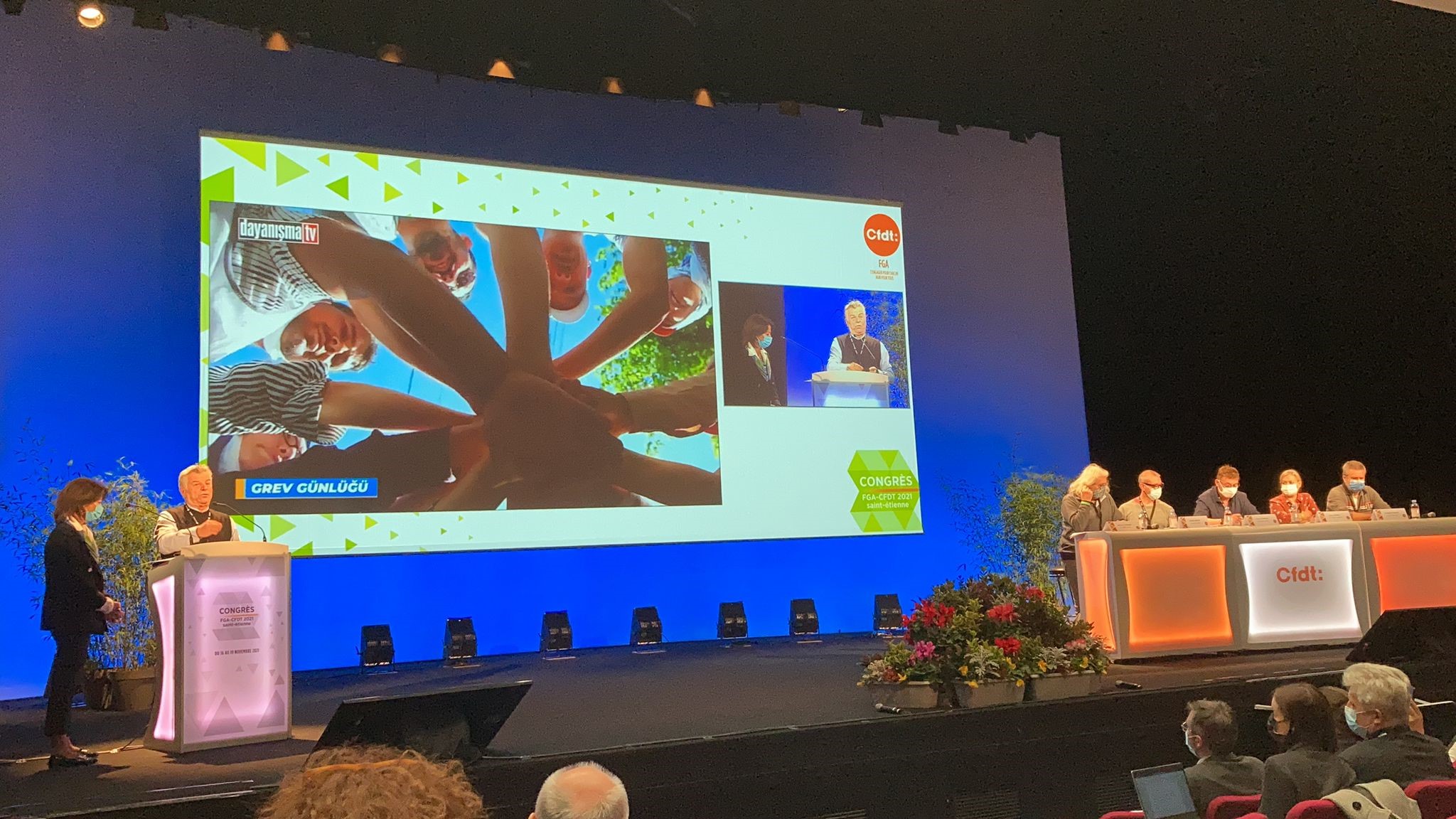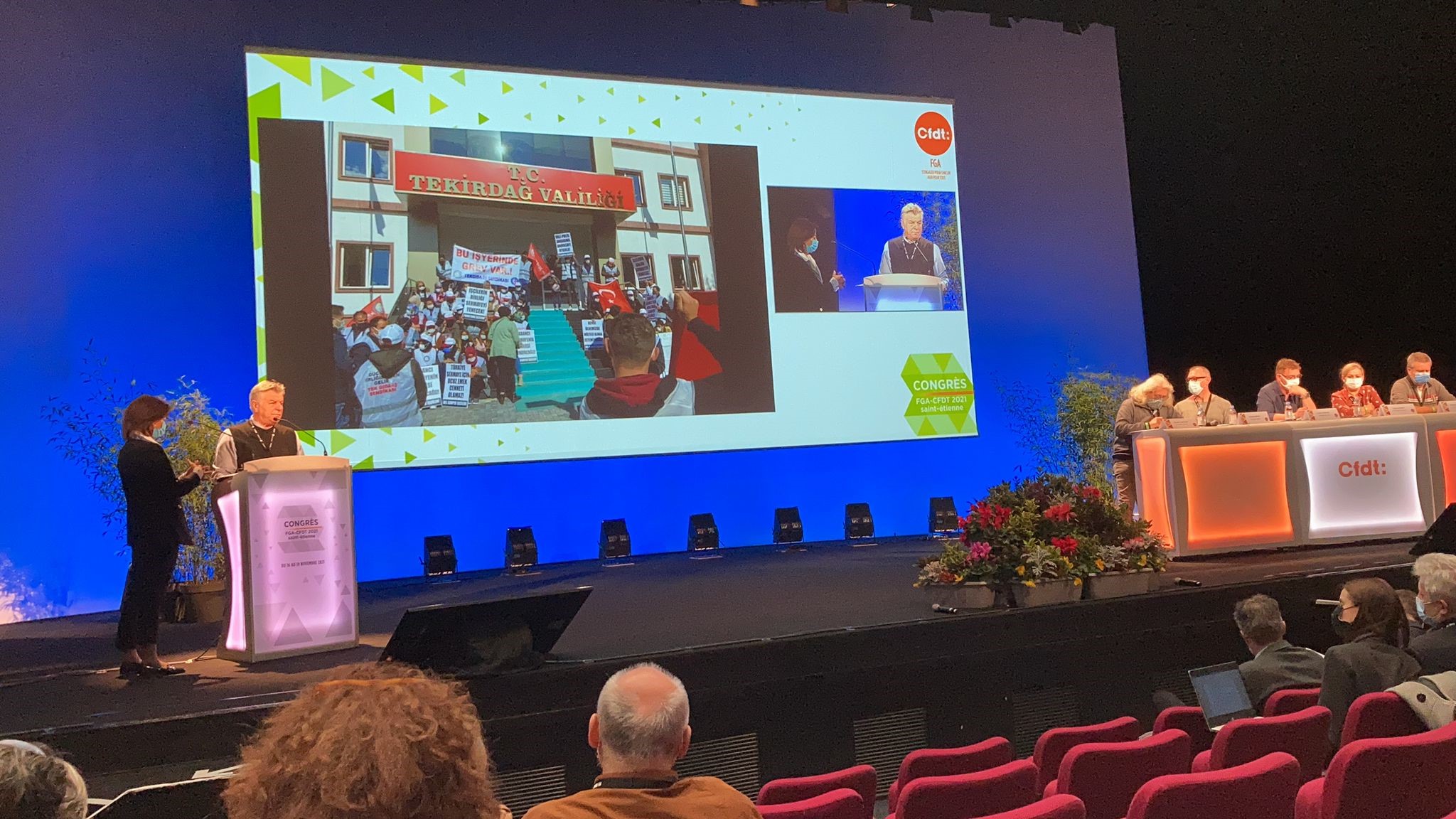 Genel Başkanımız, kongre sırasında FGA ile CFDT yöneticileri ve uluslararası sendika yöneticileriyle de ikili görüşmeler yaptı, uluslararası dayanışmanın kazanacağından emin olduğunu söyledi.