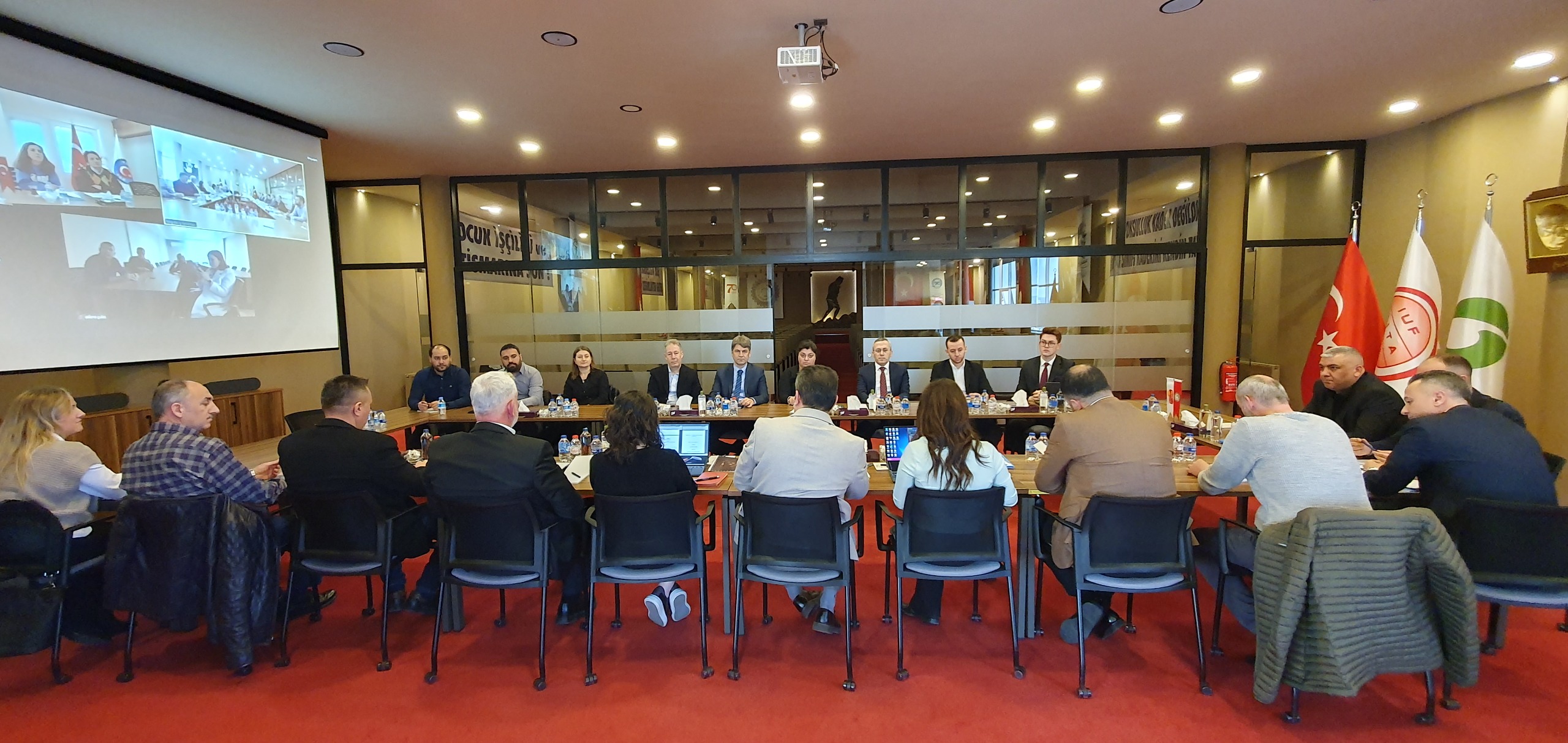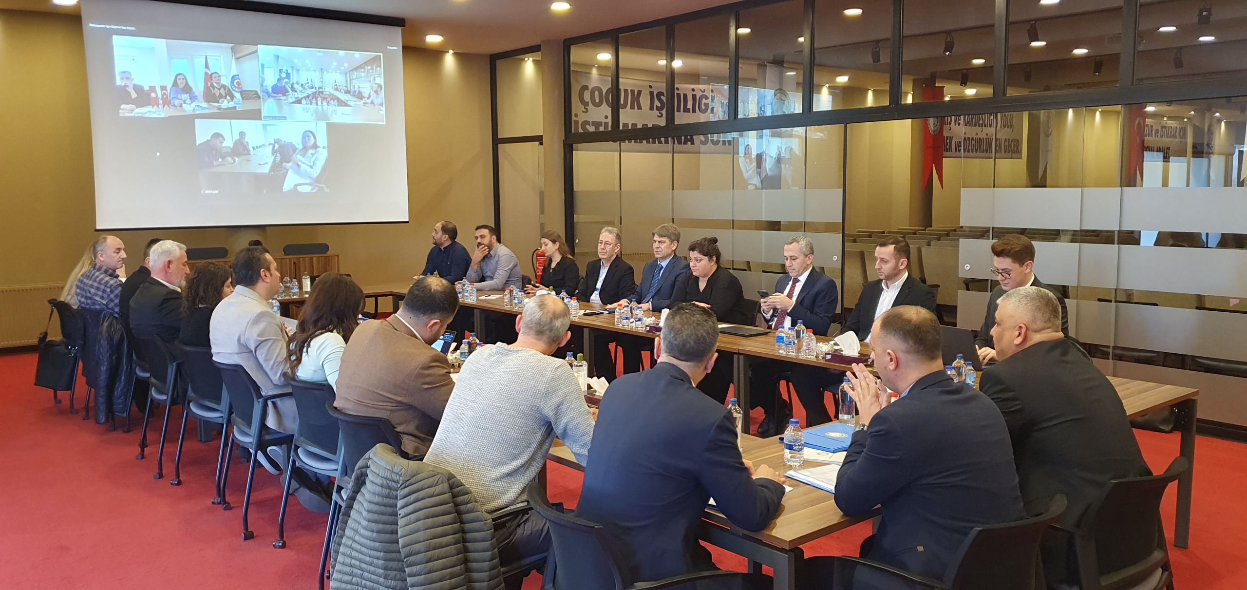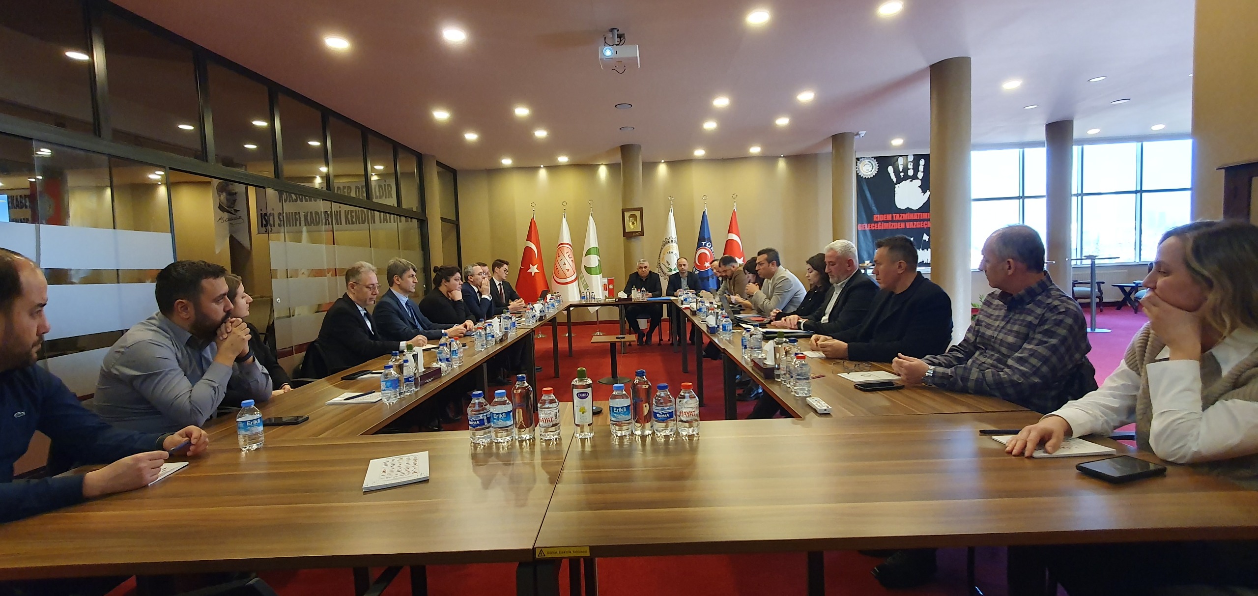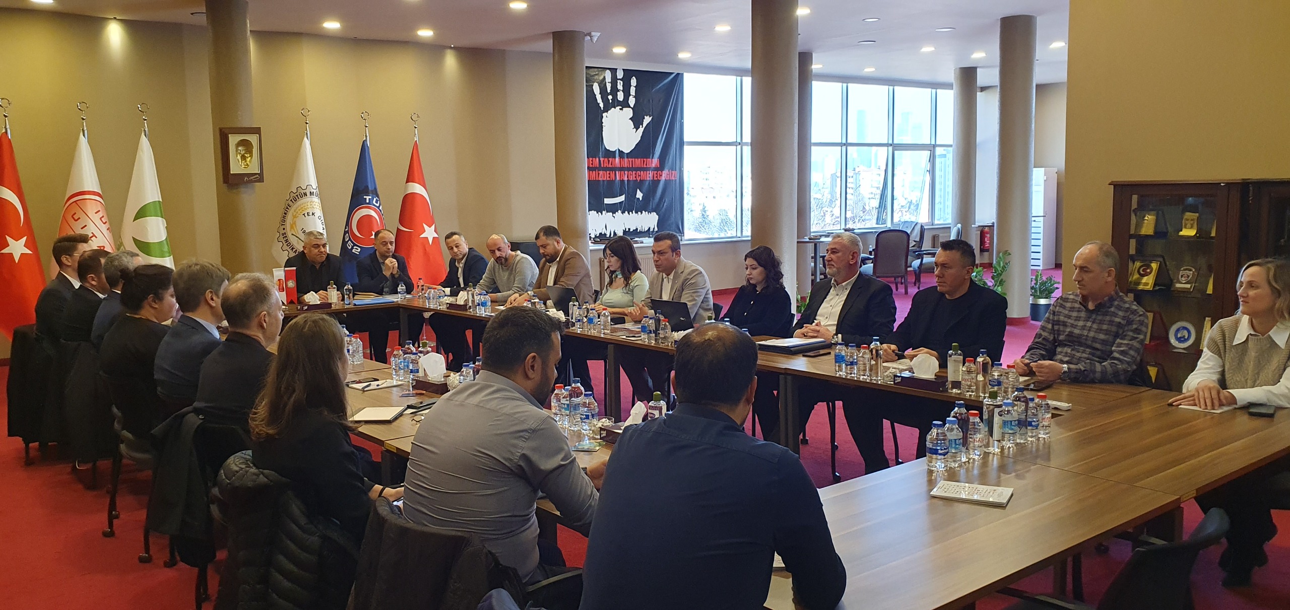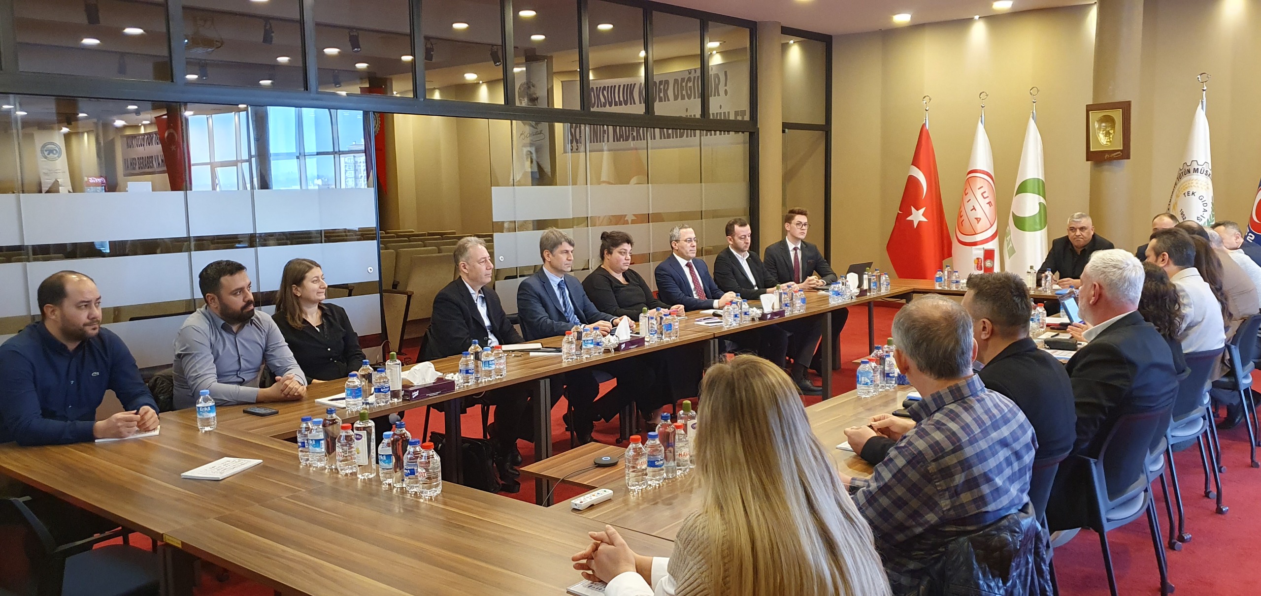 Sendikamızın genel merkezinde yapılan toplantıya sendikamız adına Genel Sekreterimiz İbrahim Ören, Adana Şube Başkanımız İbrahim Sani Gökmen, Kocaeli Şube Başkanımız Ali Bostan, Manisa Şube Başkanımız Yavuz Uçkıran, Adana Şube Eğitim Sekreterimiz Mustafa Hüseyin Çakır, Manisa Şube Mali Sekreterimiz Bahri Harık, Endüstriyel İlişkiler ve Toplu İş Sözleşmesi Koordinatörümüz Avukat Nilgün Çelik Türkmen, Endüstriyel İlişkiler ve Toplu İş Sözleşmesi Koordinatörümüz İzel Erdoğan Kılınç ile işyeri sendika temsilcilerimiz Sebahattin Çocalak, Gökhan Kabak, Emin Bol ve Burcu Yıldırım katıldı.