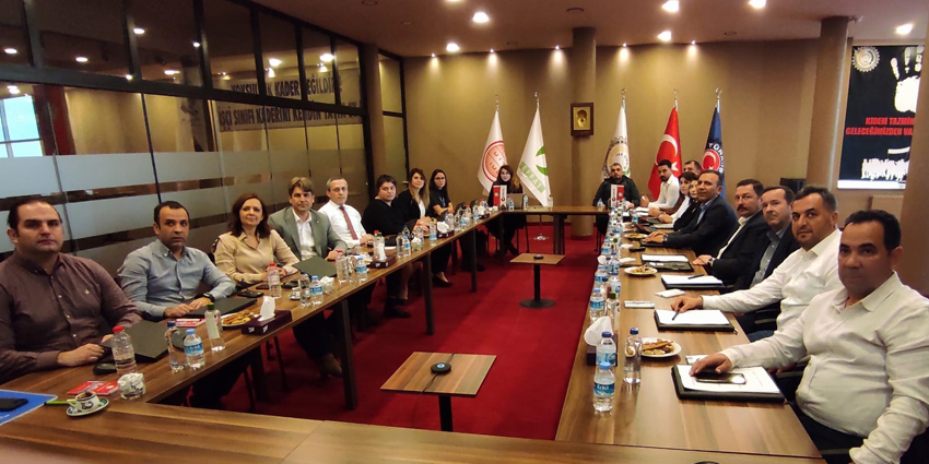 Sendikamızın genel merkezinde yapılan toplantıya sendikamız adına Genel Eğitim Sekreterimiz Kemal Köse, Adana Şube Başkanımız İbrahim Sani Gökmen, Trakya Şube Başkanımız Aytaç Göçmen, Adana Şube Mali Sekreterimiz Sidar Papatya, İzmir 3 Nolu Şube Teşkilat Sekreterimiz Gökhan Toprak, Endüstriyel İlişkiler ve Toplu İş Sözleşmesi Koordinatörümüz Avukat Nilgün Çelik Türkmen, Endüstriyel İlişkiler ve Toplu İş Sözleşmesi Koordinatörümüz İzel Erdoğan Kılınç ile işyeri temsilcilerimiz Eyyüp Kargıoğlu, Mehmet Madanoğlu ve Kadri Özcanlı katıldı.