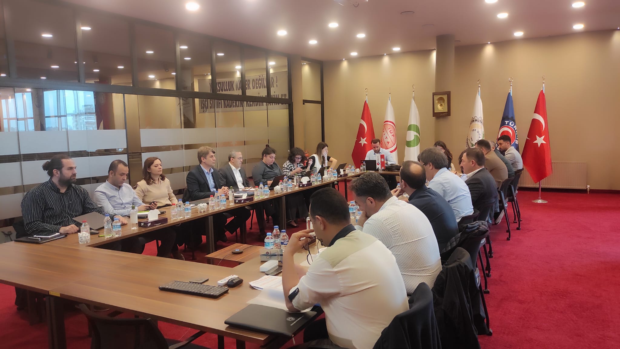 İzmir 3 Nolu Şube Başkanımız Latif Gökçay, Trakya Şube Başkanımız Aytaç Göçmen, Adana Şube Mali Sekreterimiz Sidar Papatya, İzmir 3 Nolu Şube Teşkilat Sekreterimiz Gökhan Toprak, Endüstriyel İlişkiler ve Toplu İş Sözleşmesi Koordinatörümüz Avukat Nilgün Çelik Türkmen, Endüstriyel İlişkiler ve Toplu İş Sözleşmesi Koordinatörümüz İzel Erdoğan Kılınç ile işyeri temsilcilerimiz Eyyüp Kargıoğlu, Mehmet Madanoğlu ve Kadri Özcanlı katıldı.