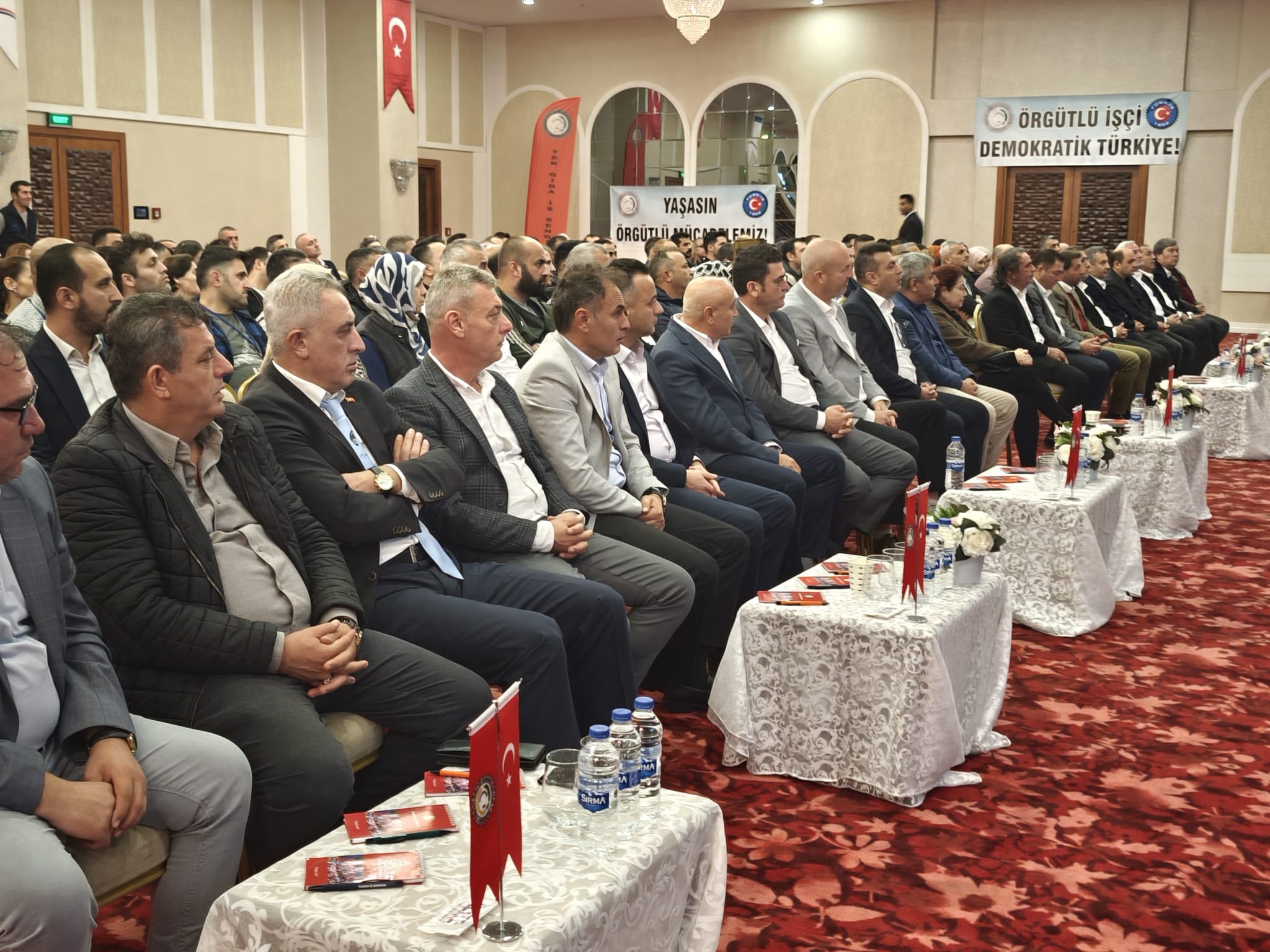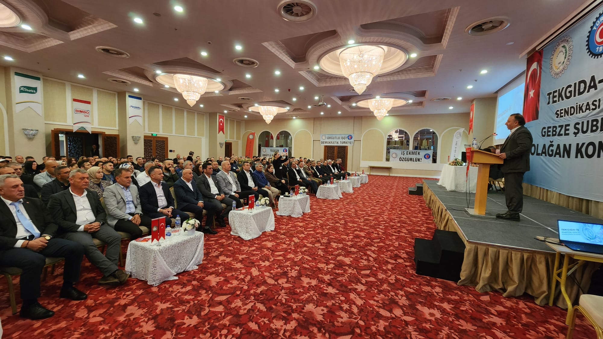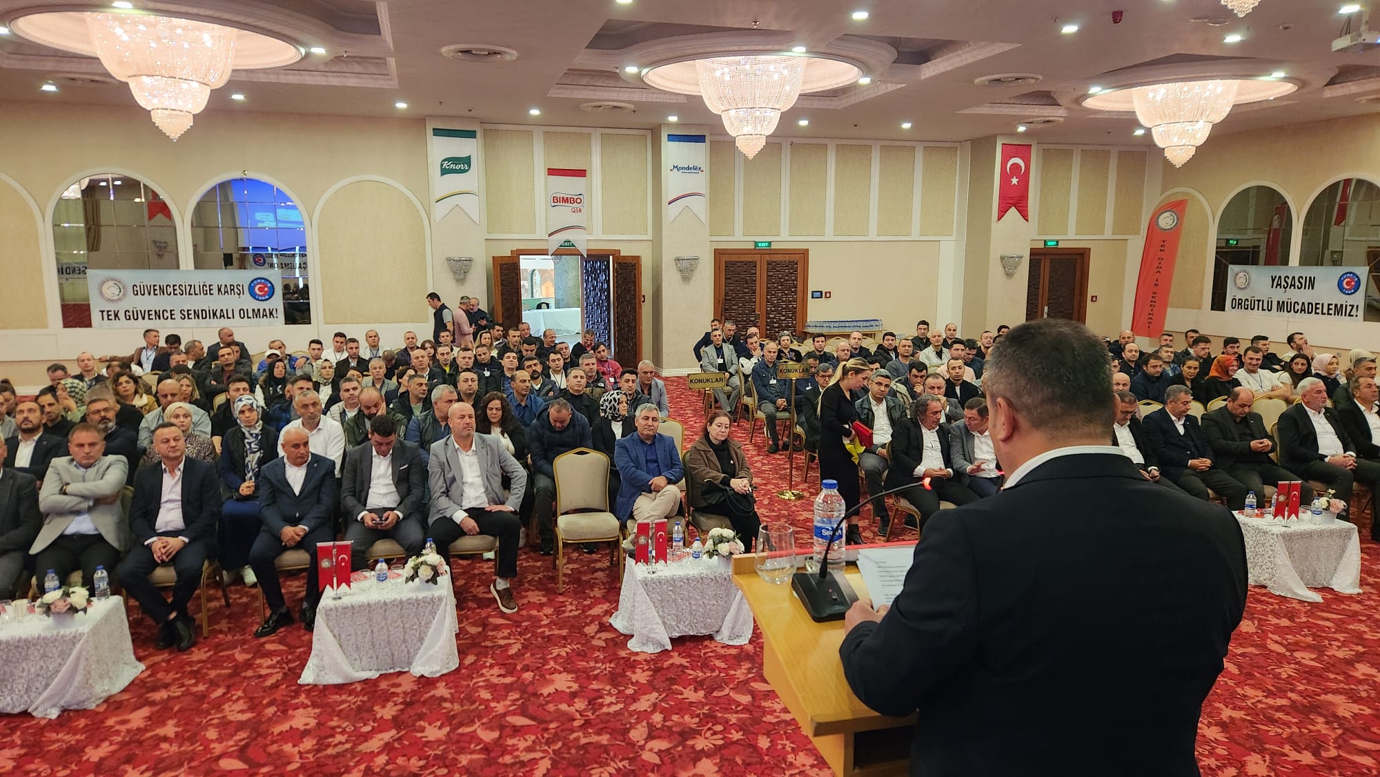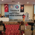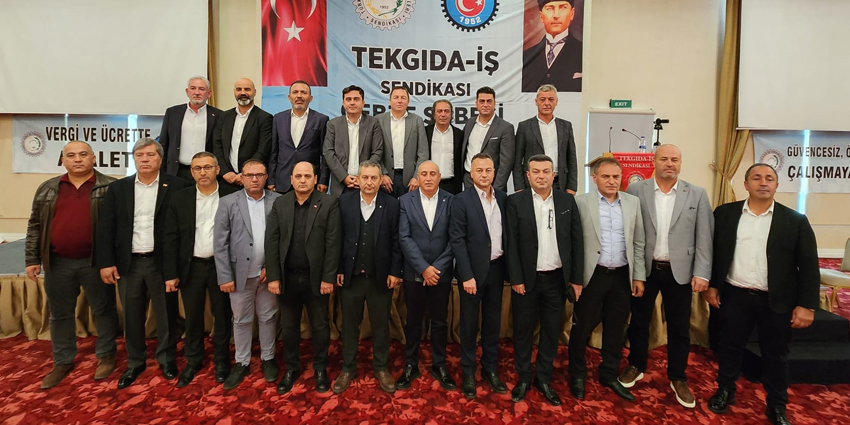 – Değerli katılımcılar, hayat pahalılığı hepimizi her geçen gün ezerken Tekgıda-İş Sendikası Yönetim Kurulu olarak bizler yıllarca özel sektör işletmelerinde en zor koşullarda, vardiyalı sistemlerde çalışmış kardeşleriniz olarak sizleri çok iyi anlıyoruz. Bazen çok sıcak, bazen çok soğuk ortamlarda çalışmak kolay değildir. Bu ortamları görmeden ve bu ortamlarda çalışmadan özel sektör işçisini anlamak kolay değildir. Özel sektör işçisinin hiçbir zaman bekleme, görev bekleme lüksü yoktur. Savaş halindeki bir asker gibi sorumluluğuna odaklanır. Nefes aldığı sürece çalışma saatlerini aralıksız emeğiyle doldurmak zorundadır. Çünkü sürekli bantlar çalışır, kaybedeceğiniz birkaç saniye bile arkanızda iş yapan arkadaşınızın iş yükünü arttırır. Genellikle seri üretim yapan gıda işçisi bu şekilde çalışır. Kısa çay ve mola saatleri dışında birbirine selam verecek vakitleri bulamazlar. Gece vardiyalarından çıktığımızda evlerimize servislerde uyuyarak gideriz. Bir arkadaşımız sizi uyandırmazsa yüksek ihtimal evinizin adresini bile karıştırma ihtimaliniz vardır. İşte kısaca özel sektör gıda işçisinin hikayesi budur. Bu hikâyenin öznesi olmayan bu hikâyeyi bilemez ve anlaması da kolay değildir. Yönetici arkadaşlarımla birlikte sizlerin içinden gelmiş kardeşleriniz olarak üzerimizdeki sorumluluğu çok iyi biliyoruz. Bu sorumluluk çerçevesinde sizler için ve sizlerle birlikte gücümüz ölçüsünde en iyisini yapmaya çalışıyoruz.