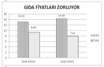 Yukarıdaki grafik, hem bu sene hem de 2014 Nisan ayında da gıda enflasyonun daha yüksek olduğunu gösteriyor.