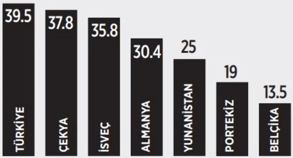 Zenginlerin servetten aldıkları payda en büyük dengesizlik Türkiye’de yaşanıyor. En zengin yüzde 1’lik kesim servetin yüzde 39,5’ine sahip. Bu alanda Avrupa ülkeleri arasında ilk sırada.