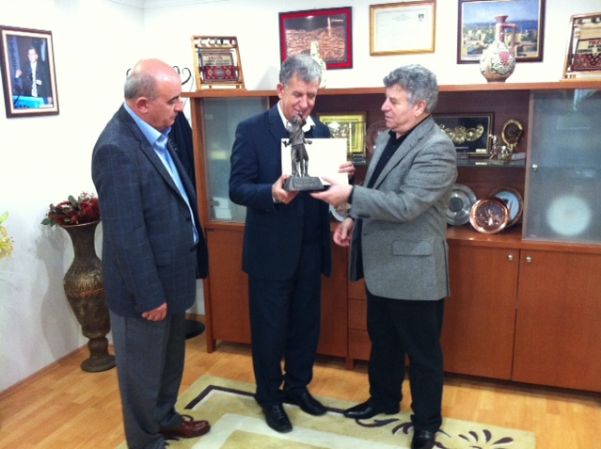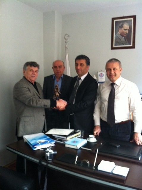 Sendikamızın Genel Başkanı Mustafa TÜRKEL, TÜMTİS Sendikası Genel Merkezini ve Toleyis Sendikası Genel Merkezi´ni ziyaret ederek “Emek ve Özgürlük” adına hazırlanan anıt heykeli, Genel Başkanlar Kenan ÖZTÜRK´e ve Cemail BAKINDI´ya verdi.