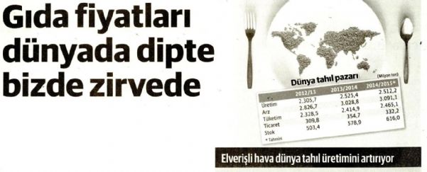 GIDA FİYATLARI DÜNYADA DİPTE BİZDE ZİRVEDE