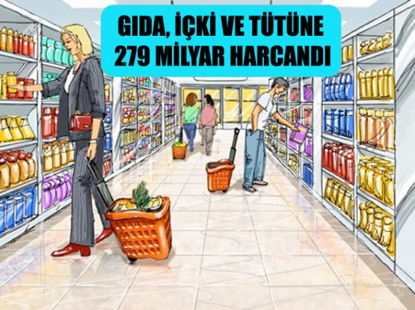 Gıda, içki ve tütün harcamaları 2012 yılında sabit fiyatlarla ise yüzde 2 artışla 22.5 milyon TL düzeyinde gerçekleşti.