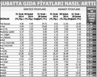 Gıda fiyatındaki değişim halkı çok ilgilendiriyor. Ocakta enflasyonun ana suçlusu olarak ün yapan sivri biber şubatta ucuzladı. Şubatta, üretici fiyat attırmadığı halde birçok üründe market fiyatının yükselmesi dikkat çekiyor