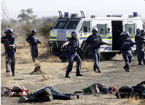 Güney Afrika Marikana’da bulunan Lonmin PLC platin madeninde grev yaparak hak arayan işçilerin polis tarafından katledilmesi büyük bir nefretle karşılanmıştır.