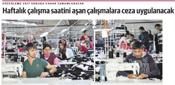 Çalışma Bakanlığı, haftalık çalışma üst sınırlarını aşan çalıştırmaları engellemek için harekete geçti. Bu alanda yapılacak belirlemelerin ardından, fazla çalışma yaptıran işyerlerine para cezası uygulamaları getirilecek. Fazla çalışma da teftiş programlarının içine alınacak.  Düzenlemelerin 2017 yılı sonuna kadar tamamlanması öngörüldü.
