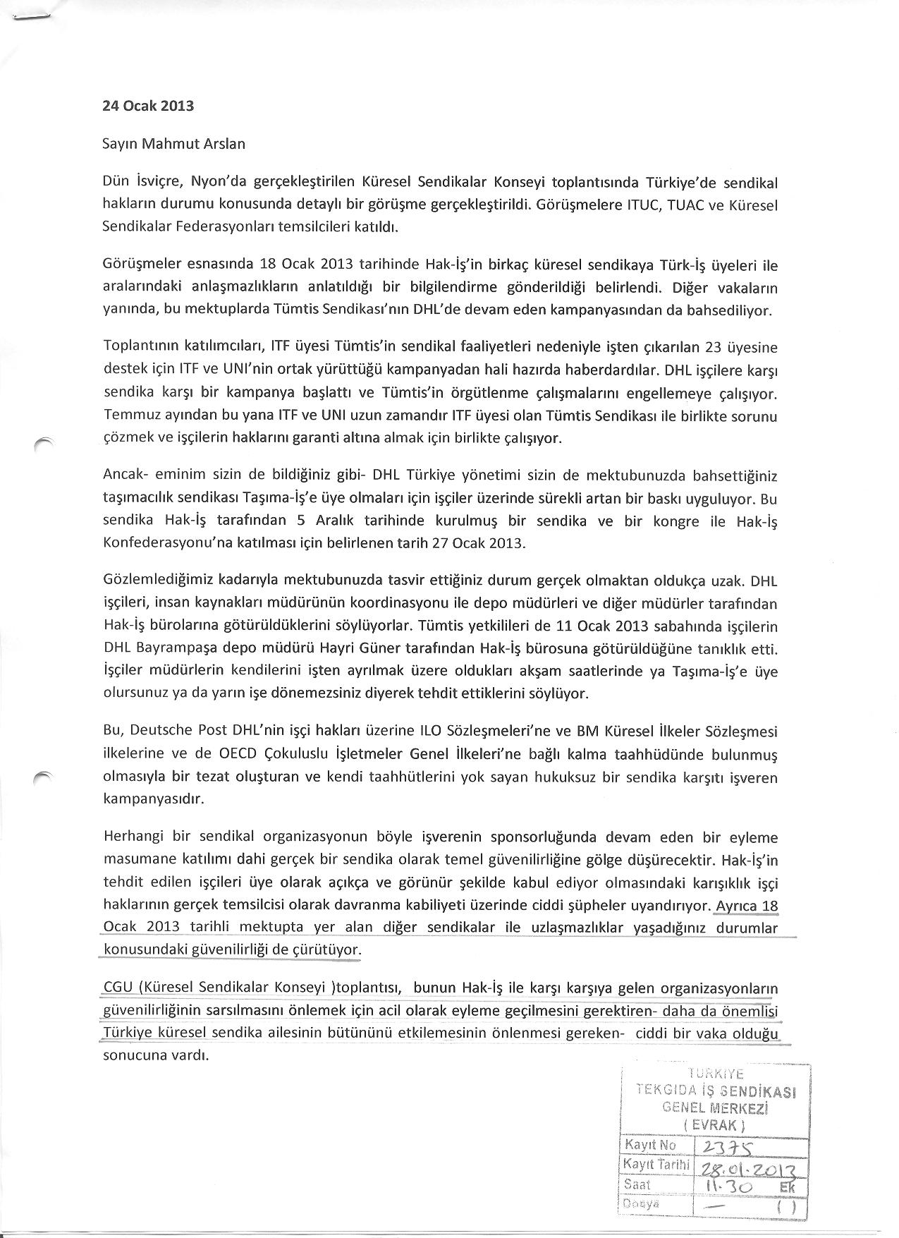 DHL´deki korsan sendikaya tepkiler artıyor. UNI Küresel Sendika ve Uluslararası Taşımacılık işçileri Federasyonu (ITF), Hak-iş´i DHL´deki örgütlenmeyi kırmak için piyon olarak kullanılabileceği konusunda uyardı.