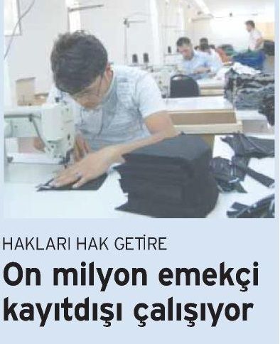 HÜKÜMET uygulamaya koyduğu yeni yasa ve yönetmeliklerle çalışma yaşamında işçilerin kazanılmış haklarını birbiri ardına elinden alırken, emekçiler güvencesiz çalışmaya zorlanıyor. Başbakanlığa bağlı Türkiye İstatistik Kurumu´na göre 2012 yılı eylül döneminde 10 milyon 214 bin kişinin kayıtdışı olduğu ortaya çıktı.