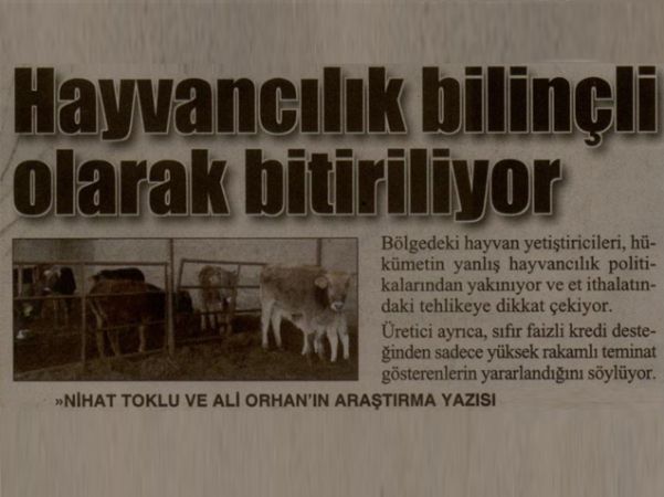 Dağda yerli ırk kesim hayvanı üreticiliği yapan Mehmet Kasap, maliyecilerden yana hayli dertli. Ahırındaki buzağıların kulak küpelerinin birkaç ay önce takıldığını söyleyen maliyecilerin, “Demek ki sen üretici değil tüccarsın. Bu işin ticaretini yapıyorsun” diye 7 bin lira ceza kestiğinden yakındı. “Yeni doğmuş buzağılara küpelerini annelerinin karnında takacak halimiz yok. Ama bunu bile anlatamıyoruz. Devletin bu tavrı bizim moralimizi bozuyor. Sanki bilinçli olarak bu işi yapmamamız isteniyor. Üretimden çıkmayı düşünmeye başladık.