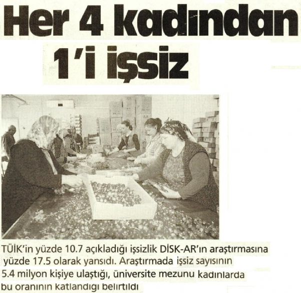 Kadınlarda işsizlik Şubat 2014 döneminden bu yana 209 bin kişi artarken, erkeklerde ise artış 64 bin kişi olarak gerçekleşti. Yaklaşık her dört işsizden bilinin üniversite mezunu olduğuna dikkat çekilen değerlendirmede, özellikle yükseköğretim mezunu kadınlann işsizliğin en ağır biçimde yaşayan kesimler içerisinde yer aldığı vurgulandı.