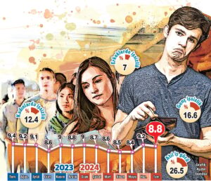 Yoğun beyin göçü yaşayan ve gençlerin yurt dışına çıkış fırsatı kovaladığı Türkiye’de resmi işsizlik verilerine göre de genç işsizliği ortalama işsizliğin üstüne çıkmış durumda. 15-24 yaş grubunu kapsayan genç nüfusta işsizlik oranı bir önceki aya göre 1 puan azalarak yüzde 16.6 oldu. Bu yaş grubunda işsizlik oranı erkeklerde yüzde 12.2 olurken, genç kadınlarda işsizlik oranı yüzde 25 olarak tahmin edildi. Bu verilere göre çalışabilir nüfustaki her 4 genç kadından 1’i işsiz kaldı. İstihdam edilenlerden referans döneminde işbaşında olanların, mevsim ve takvim etkilerinden arındırılmış haftalık ortalama fiili çalışma süresi 2024 yılı Temmuz ayında bir önceki aya göre 1.3 saat azalarak 42.5 saat olarak gerçekleşti.