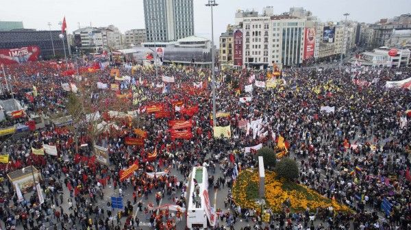 GAZİANTEP: İstasyon Meydanı’nda düzenlenen mitingde DSP ve EĞİTİM-İş Sendikası’ndan bazı kişiler İstiklal Marşı okunmasını talep etti, ancak bayramı organize eden sendikalar tarafından bu talep reddedilince kısa süre gerginlik yaşandı. Kutlamalarda Kürtçe ve Türkçe, sloganları atıldı.
