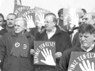 DİSK’in “Sendikal hak ve özgürlükler için demokrasinin takipçisiyiz” sloganıyla her hafta çarşamba günleri düzenlediği bir saatlik oturma eyleminin 7’ncisi dün gerçekleşti. DİSK Genel Başkanı Süleyman Çelebi, AKP iktidarının TEKEL direnişine karşı karalama, küçümseme ve sulandırılma kampanyası başlattığını belirterek “TEKEL direnişi bizlere birlik, mücadele ve dayanışma gücü vermiştir. DİSK olarak bütün gücümüzle direnen işçilerin yanında olacağız. Bu mücadeleyi yalnızlaştırmayacağız” dedi.