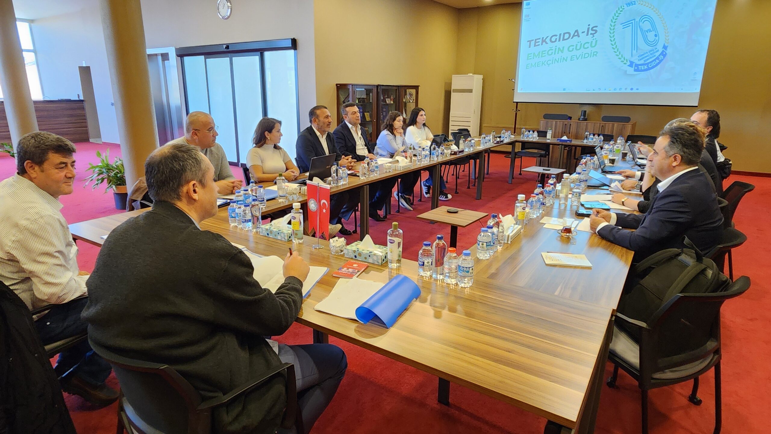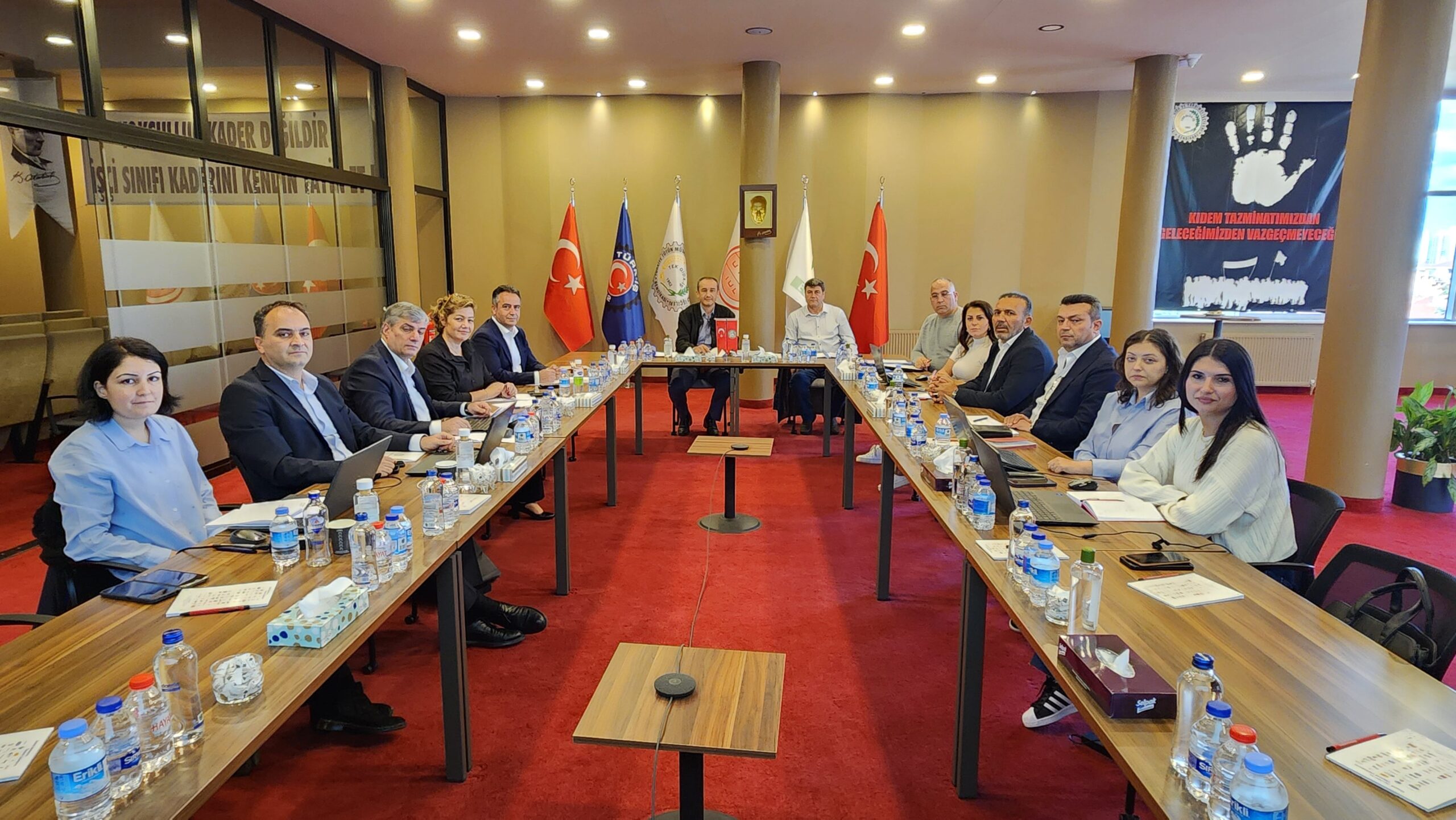 Sendikamızın genel merkezinde yapılan toplantıya sendikamız adına Genel Sekreterimiz İbrahim Ören, Genel Teşkilatlanma Sekreterimiz Kemal Köse, İzmir 7 Nolu Şube Başkanımız Ömer Atabey, Genel Sekreter Yardımcımız Avukat Nilgün Çelik Türkmen, Genel Sekreter Yardımcımız İzel Erdoğan Kılınç, Şube Personelimiz Deniz Aydın Mazlum ile işyeri temsilcimiz Ali Karapınar ve Sadık Yılmaz katıldı.